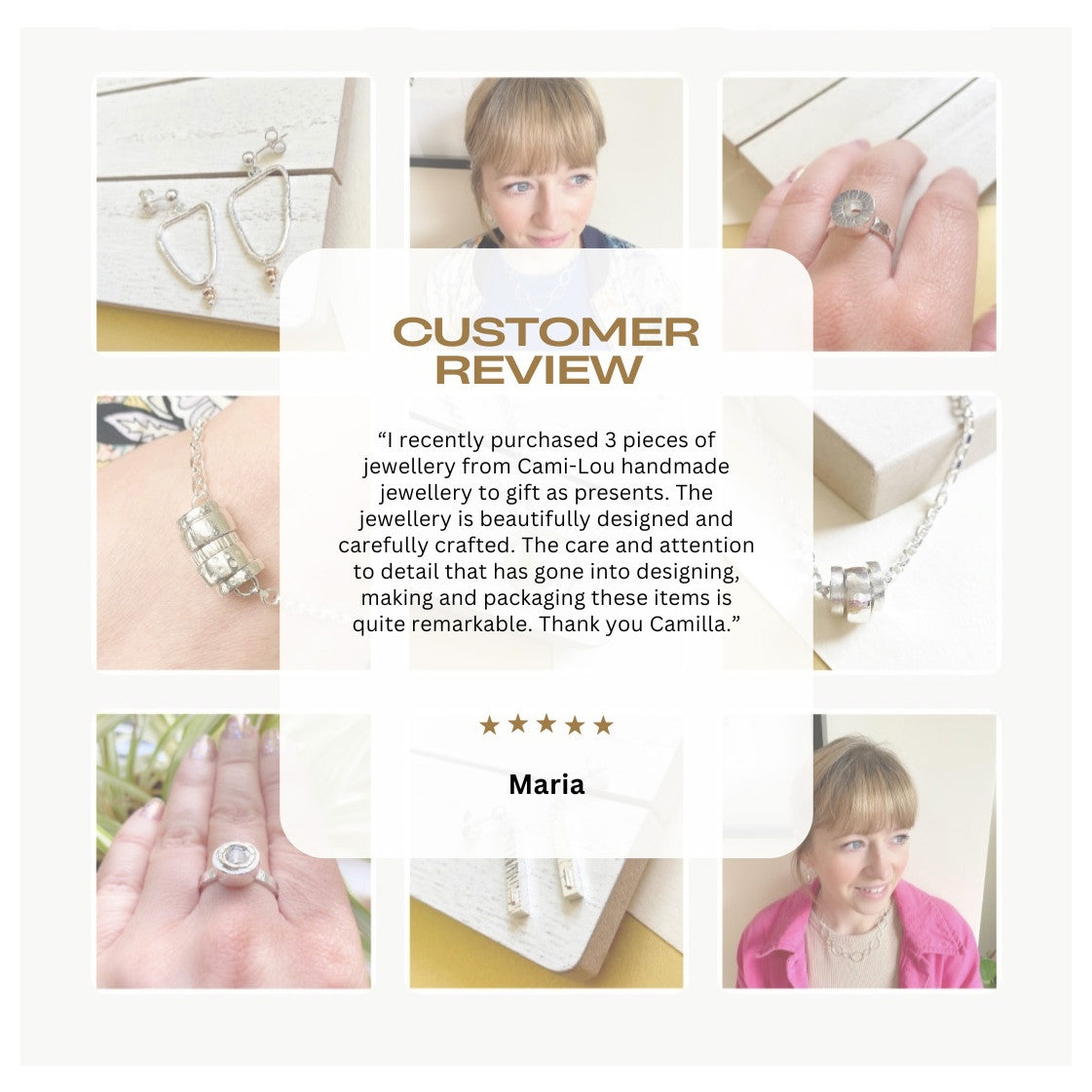 Cami-Lou Jewellery Designs is a contemporary, sustainably made, jewellery brand that uses recycled precious metals, semi-precious and precious gemstones.