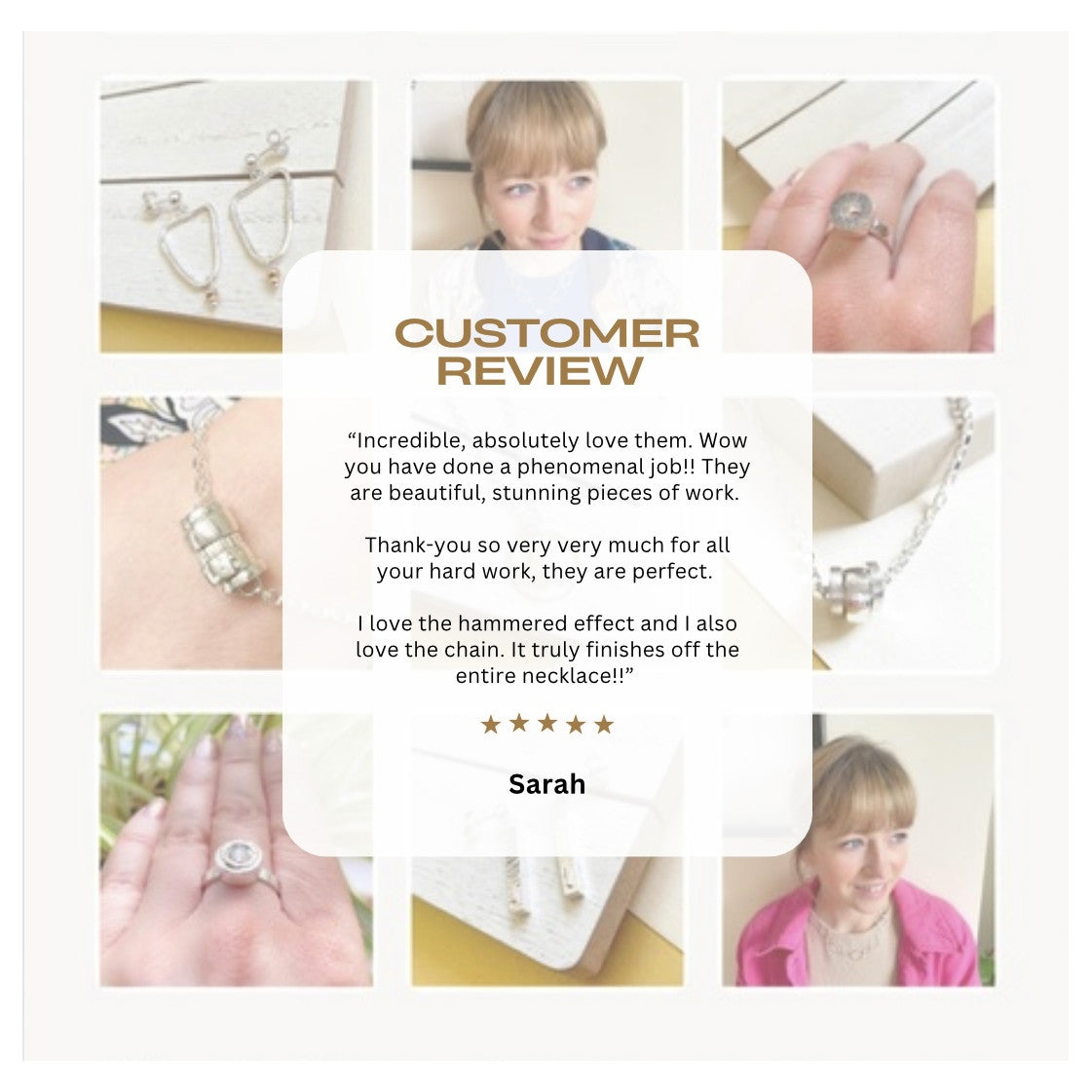 “My mission is to make one of a kind, unique precious metal jewellery that will last a lifetime. I have always liked to be individual especially when it comes to my jewellery. Jewellery is personal, tells a story and creates memories so I want to designs pieces unique to each person and adding texture allows me to do this. Due to how every piece of jewellery is made and with it being textured by hand means no two pieces will ever be the same, even the same designs will be different from one another which for me only adds to the appeal of handmade. We are all wonderfully unique and why shouldn’t our jewellery follow suit. “