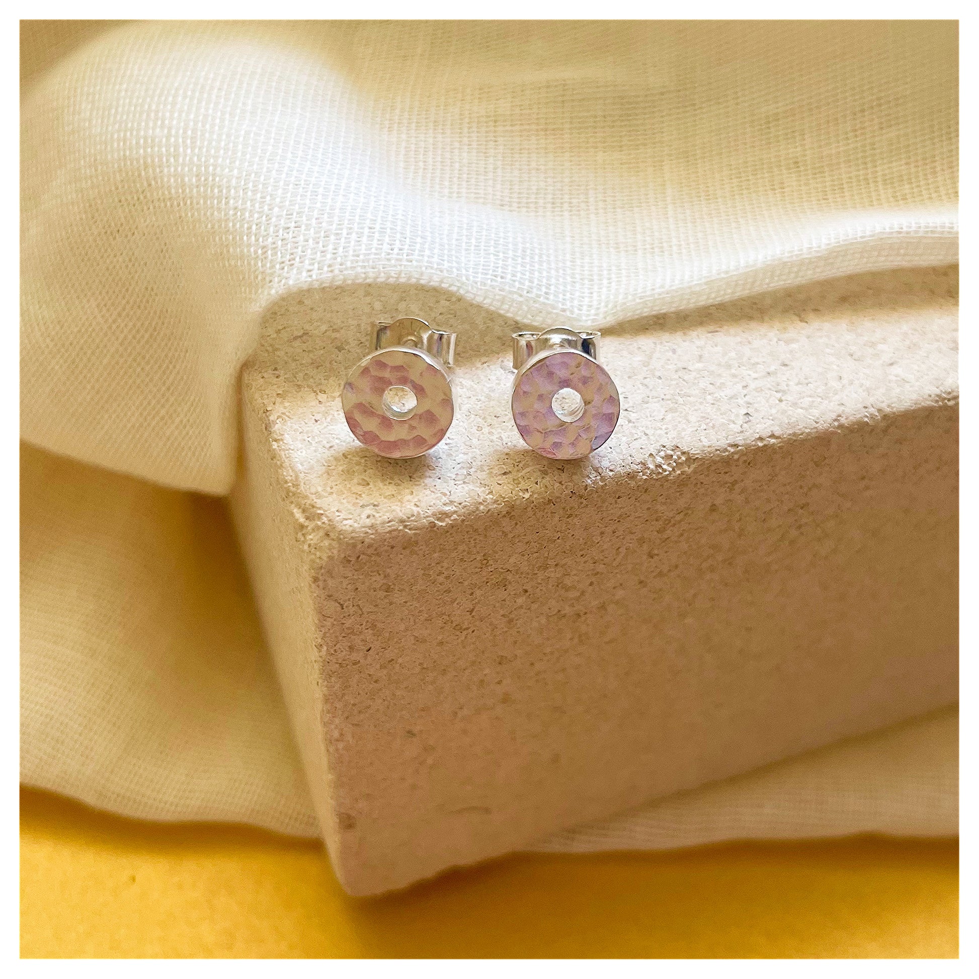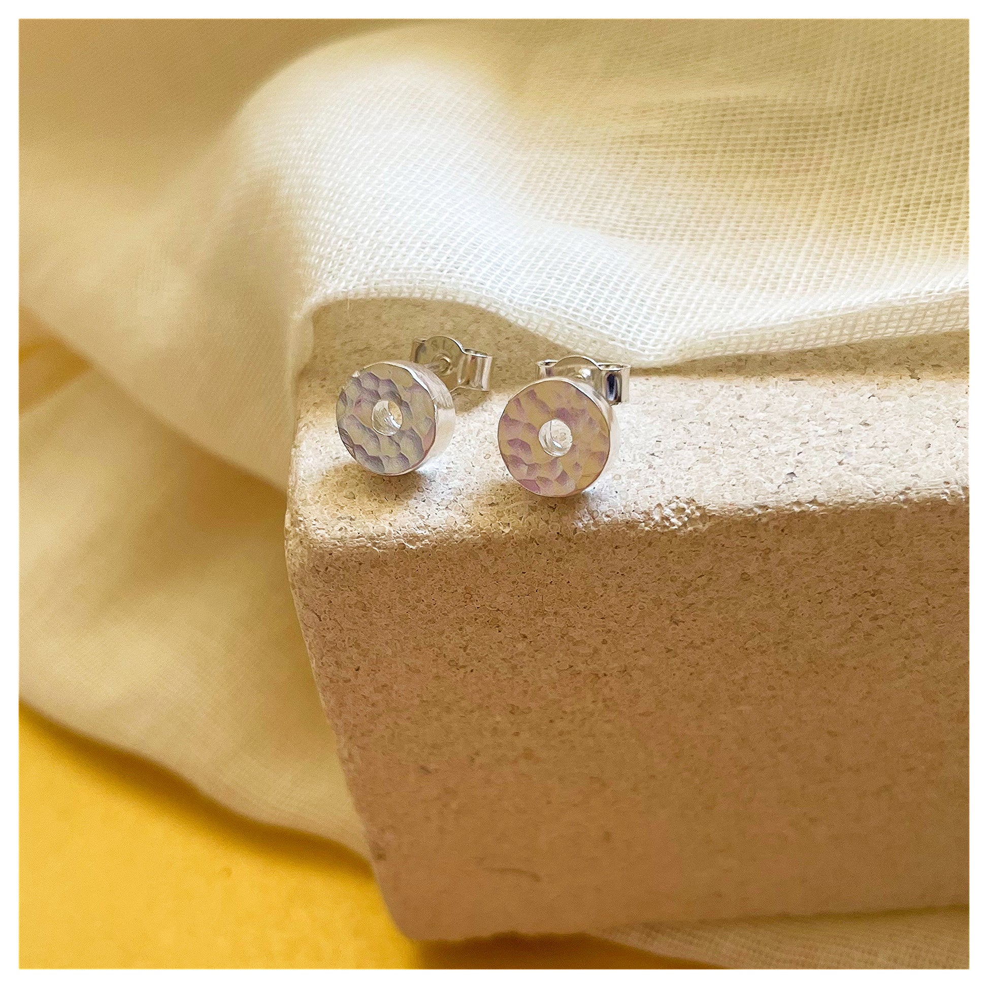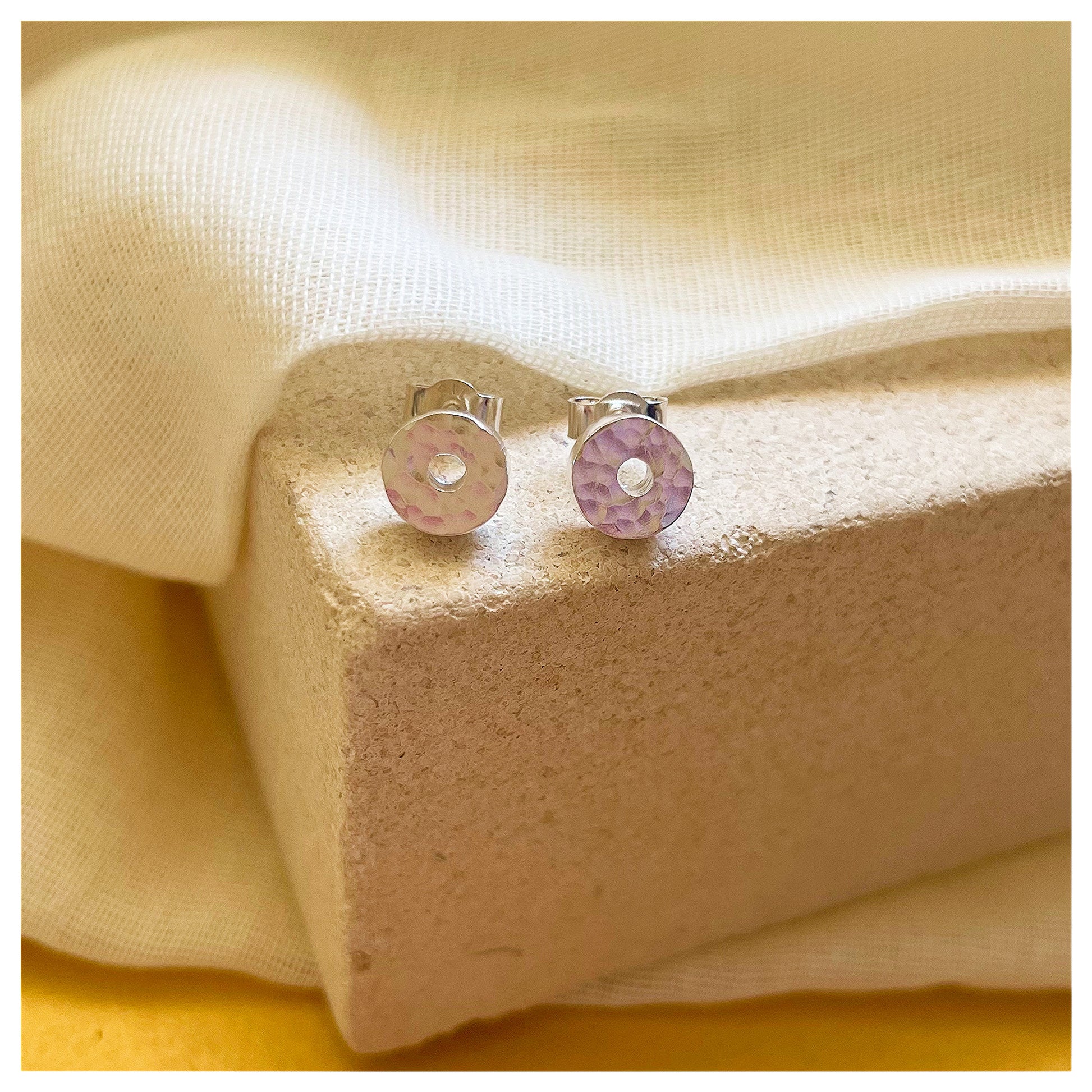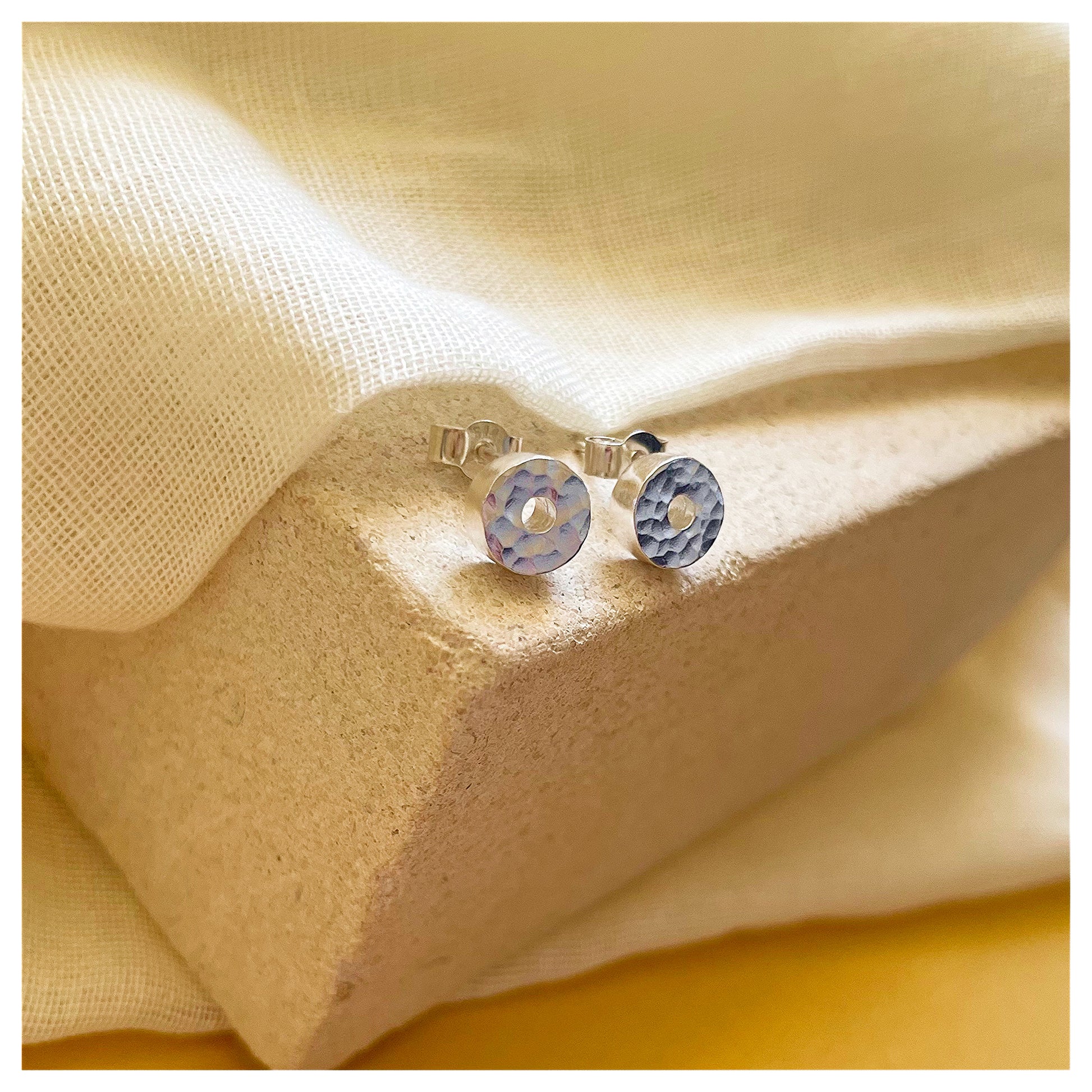 - The mini donut studs has a hammered texture on the top and the sides are polished to add more detail.