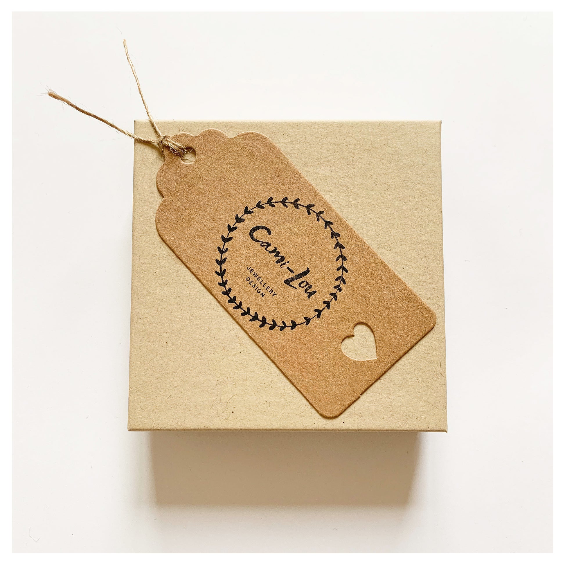 - All my jewellery comes in a beautiful jewellery box that has been put together by myself, and hand stamped using my personalised logo stamp. The box is then gift wrapped in a beautiful ribbon (colours and design may vary due to what’s available but will be in keeping with brand colours) Also included is a thank you and jewellery care card.